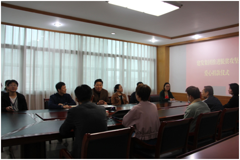 10月17日,在第四个国家扶贫日到来之际,集团公司本着“奉献爱心、自愿捐款”的原则,组织干部职工在公司五楼会议室举行了推进脱贫攻坚爱心捐款仪式。公司党委委员、纪委书记、监事会主席张金俭主持捐款仪式,全体干部职工踊跃参与捐款,累计捐款5850元,为我市的脱贫攻坚工作奉献出一片爱心。