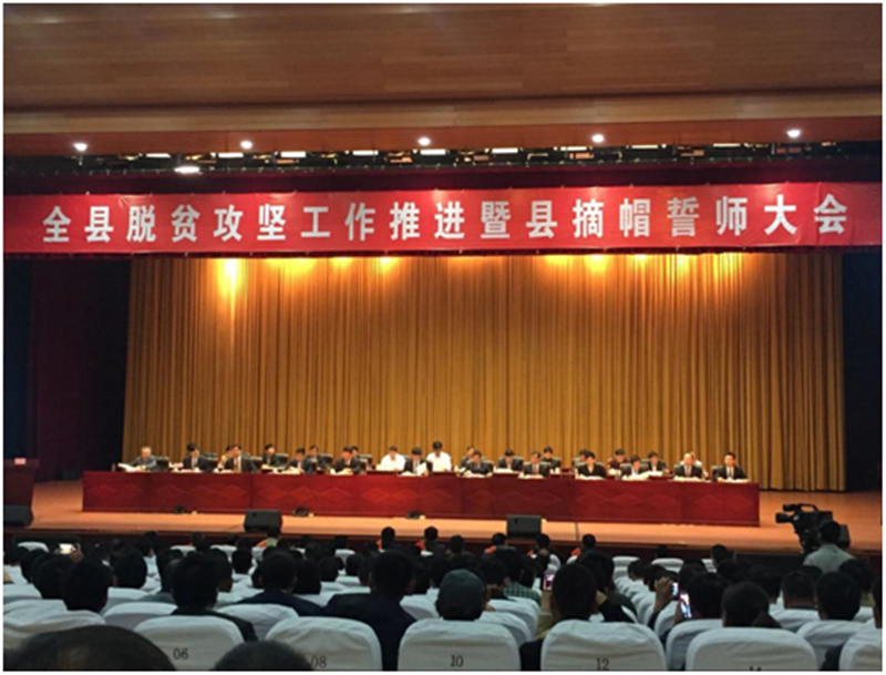 420日上午,寿县脱贫攻坚工作推进暨县摘帽誓师大会在寿春大剧院召开。市委副书记王崧、市政府副秘书长、市扶贫办主任宋立敏、县委书记从维德出席会议,寿县县委副书记刘居胜主持大会。