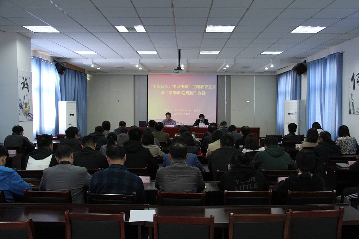 11月12日下午,市“不忘初心、牢记使命”主题教育宣讲暨“举旗帜、送理论”宣讲团莅临公司开展理论宣讲,市委宣讲团成员、淮南市文明办副主任姚多卫为公司党员干部职工授课。公司党委副书记、副董事长、总经理宋道河主持会议。