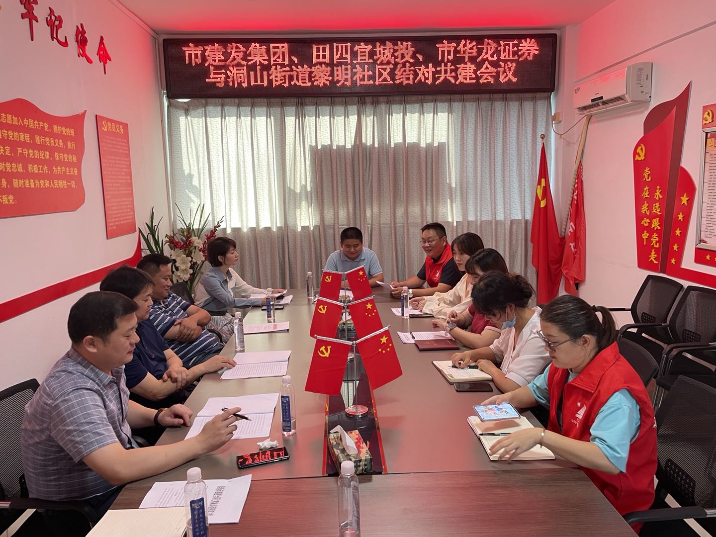 为认真贯彻落实市委市政府关于创建全国文明城市工作部署,持续加大与结对社区结对共建力度,9月10日下午,建发集团与田区四宜建投集团、华龙证券、田区洞山街道黎明社区召开联席会议,就结对共建的工作重点、共建方案等开展调研座谈。建发集团党委副书记高友禄、四宜建投集团董事长余宏伟、华龙证券淮南朝阳西路证券营业部总经理姚登辉、洞山街道党工委副书记胡传松、黎明社区党总支书记张贤及有关人员参加会议。