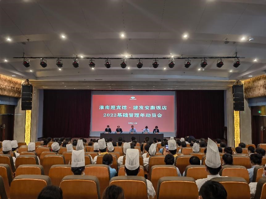 参会人员有公司领导班子、饭店管理团队及全体职工,会上传达了《淮南迎宾馆·建发安徽饭店2022基础管理年活动方案》文件。