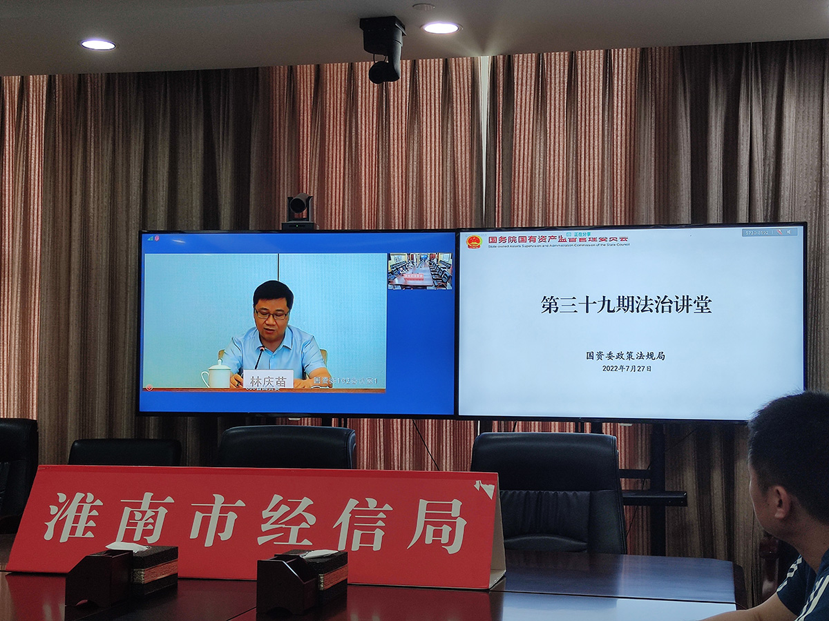 7月27日下午,建发集团安排审计法务部工作人员赴淮南市政务中心参加安徽省国资委法规处召开的视频法治讲座,及时掌握国务院国资委工作安排。