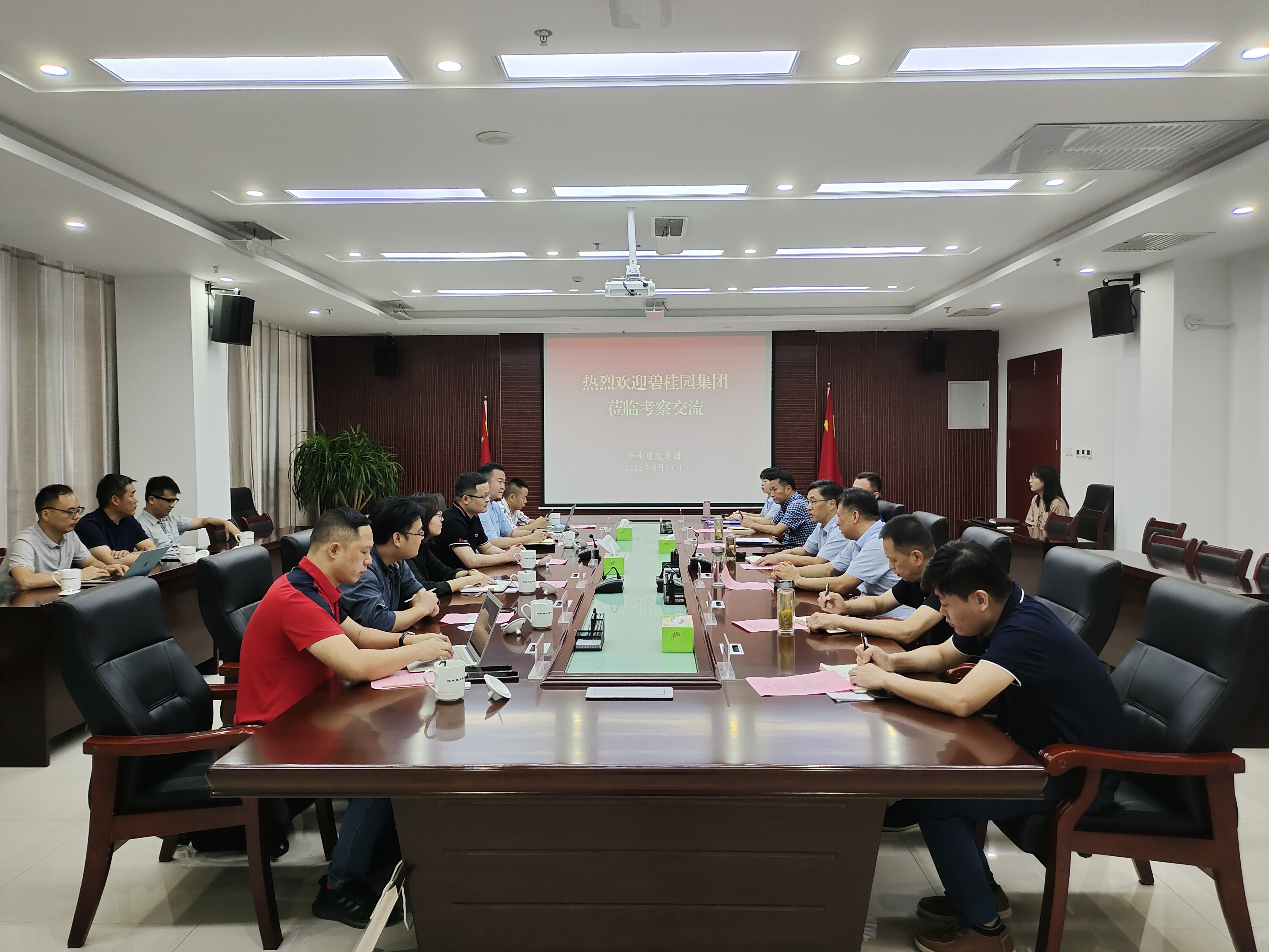 8月17日,碧桂园集团皖西北区域总裁钱剑勇、碧桂园集团凤悦系品牌群执行总裁吴小雄一行到访sunbet申搏官方网站,集团公司党委书记、董事长宋道河接待了来访客商。双方就淮南市城市基础设施服务、房地产开发、文化旅游项目开发的合作、运营、投资等方面进行了深入交流。