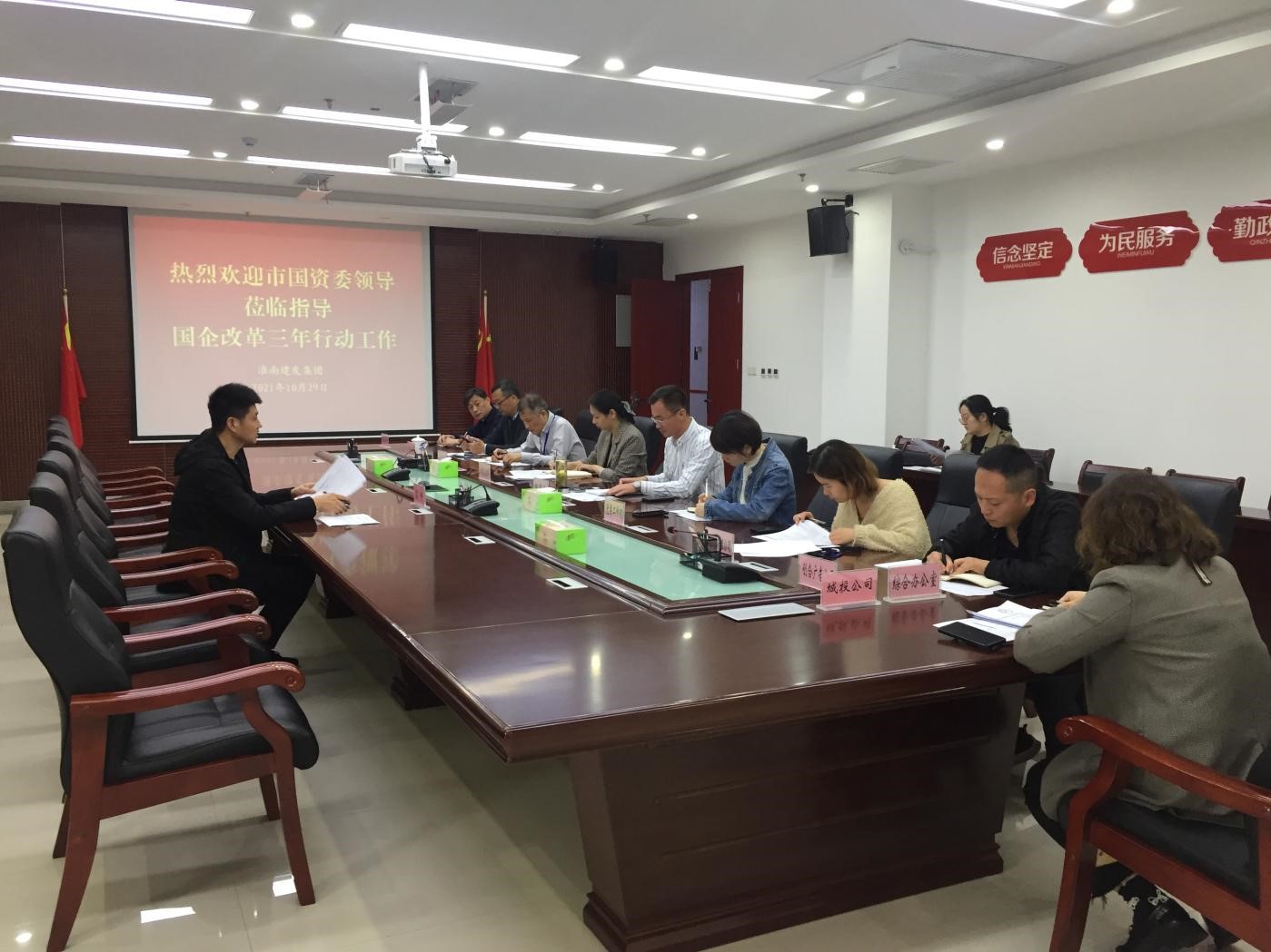 2021年10月29日上午,市国资委推进国企改革三年行动方案落实工作督办专员苏峥莅临建发集团,指导集团公司国企改革三年行动方案落实工作。公司党委委员、董事、副总经理韩雪冰主持会议。