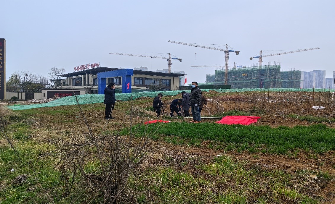 为加快推进建发·江山印项目开发建设进程, 2023年2月23日上午,建发房地产开发公司安排人员对项目界址点进行实地测设。为便于项目边界识别,本次在所有测设点位插上彩旗。通过大家共同协作,该项目界址点测设工作进展顺利,于当天上午全部完成,为下一步围挡施工创造了条件。