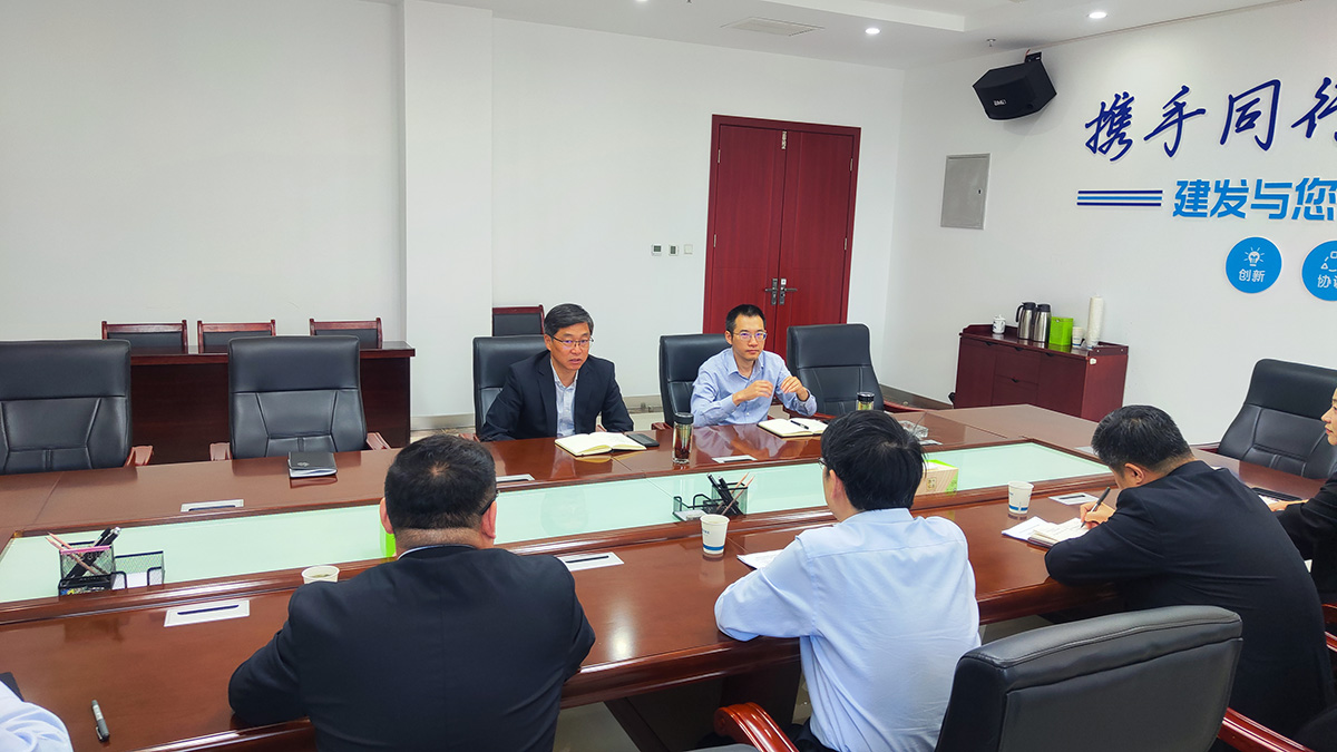 5月9日上午,徽商银行淮南分行党委书记、行长冯海峰带队到访建发集团,建发集团党委书记、董事长宋道河主持接待,党委委员、副总经理栾冰冰参加座谈会议。
