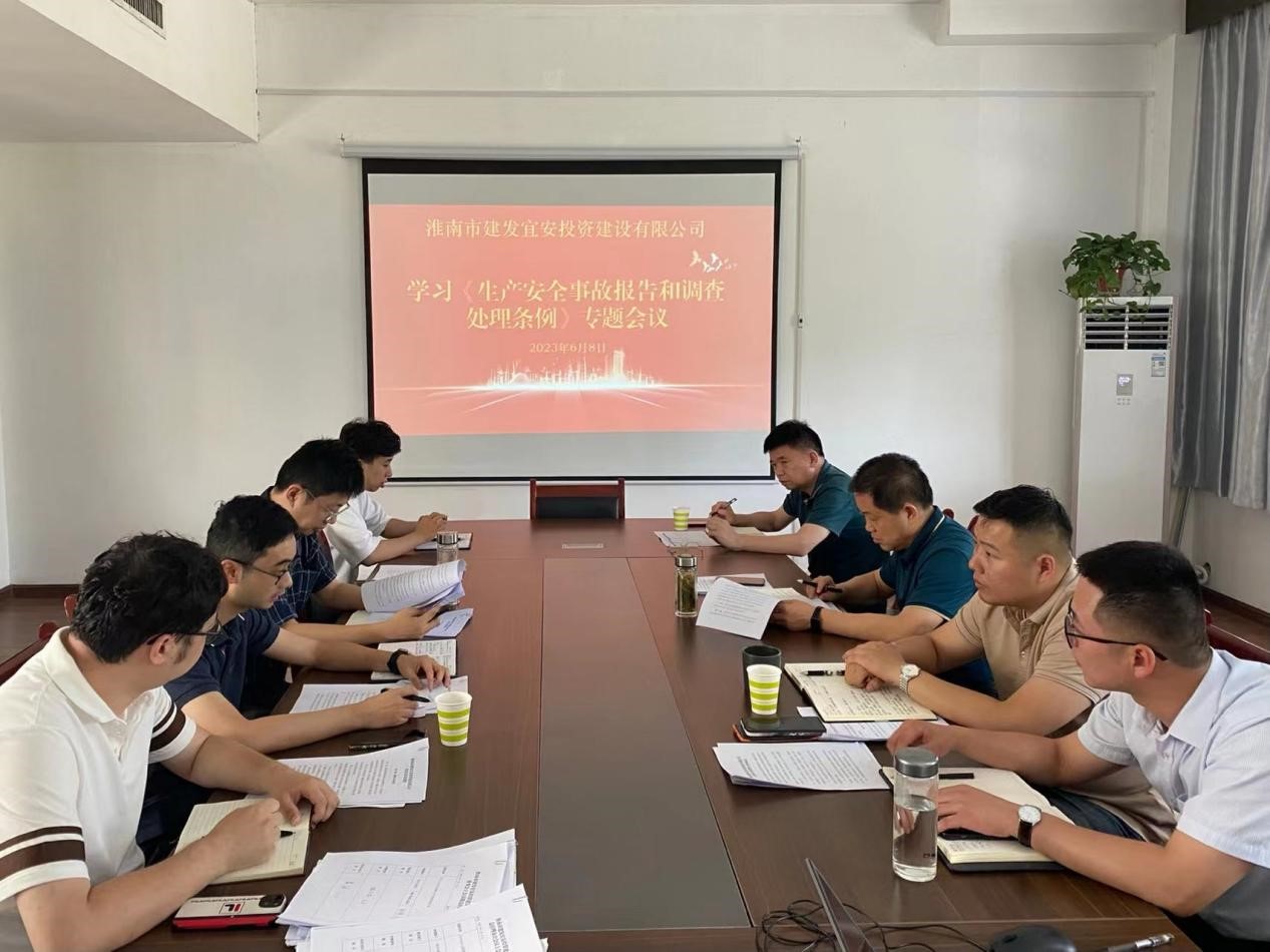 6月8日下午,淮南市建发宜安投资建设有限公司在公司2楼210会议室召开安全生产专题学习会议,公司相关负责人员参会。