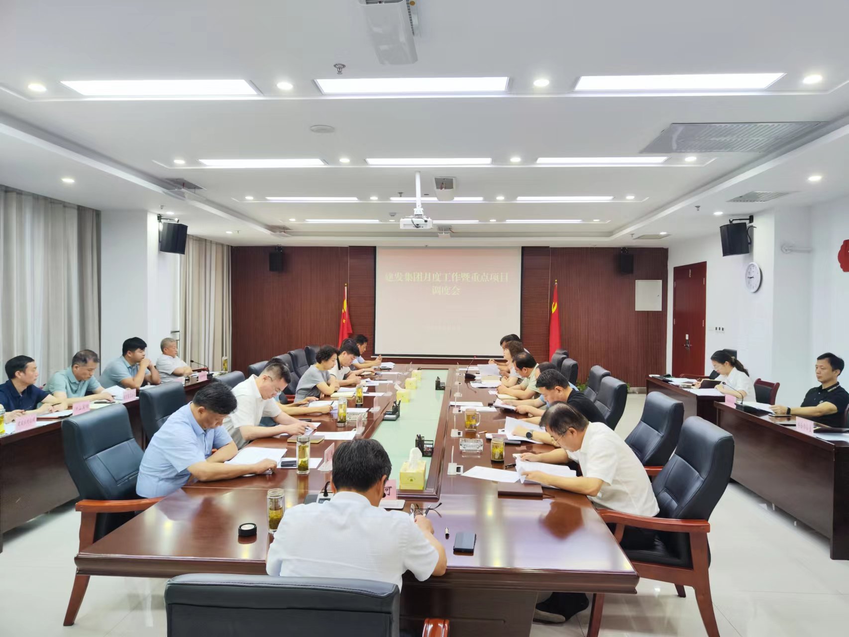 7月6日上午,建发集团在436会议室召开集团公司月度工作暨重点项目调度会。党委书记、董事长宋道河主持,集团公司领导班子成员,各部室、各子公司负责人参加会议。