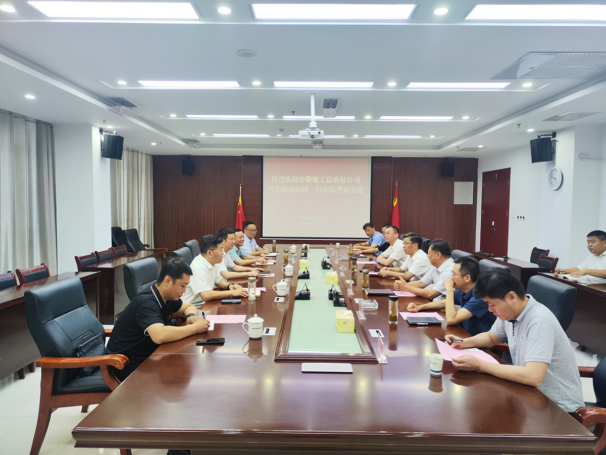7月12日下午,安徽建工总承包公司党委书记、总经理傅宏林一行来sunbet申搏官方网站考察交流。sunbet申搏官方网站党委书记、董事长宋道河主持接待,党委副书记、副总经理宋旭,党委委员、董事、副总经理韩雪冰,党委委员、副总经理栾冰冰,副总经理陈彪,以及安徽建工淮河建投(淮南公司)和sunbet申搏官方网站投融资部、资产管理部负责人参加。