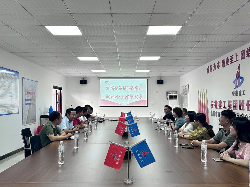 活动中,党员们认真听取了项目建设负责人关于项目规划、建设成效、预期效果等方面介绍,参观了智慧工地、沿湖廊桥、净水阶梯等建设情况,实地看变化、见发展,感受项目专班人员和施工人员争分夺秒抢建设进度的紧张场面。活动最后,第一党支部和项目建设单位安徽建工淮南分公司还在项目部开展了热烈地交流座谈。建设方项目经理蒋欢和有关专项工作负责人向党员们详细介绍了自开工以来,全体参建人员“挂图作战、倒排工期”,党员干部充分发挥先锋模范带头作用,驻扎一线办公作业,及时协调解决拆迁、测绘、技术攻关等方面困难问题,加速工作推进的过程。通过现场参观与深入交谈,党支部党员们更加切身感受到项目建设的强度与难度,感受到参建者舍小家、顾大家的奉献精神。