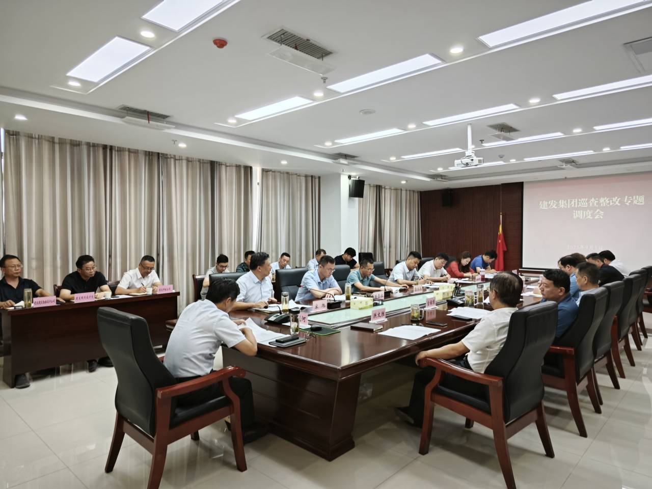 9月1日下午,建发集团在集团公司436会议室召开巡察整改专题调度会,党委书记、董事长宋道河主持会议,集团公司领导班子成员,各部室、各子公司负责人参加会议。