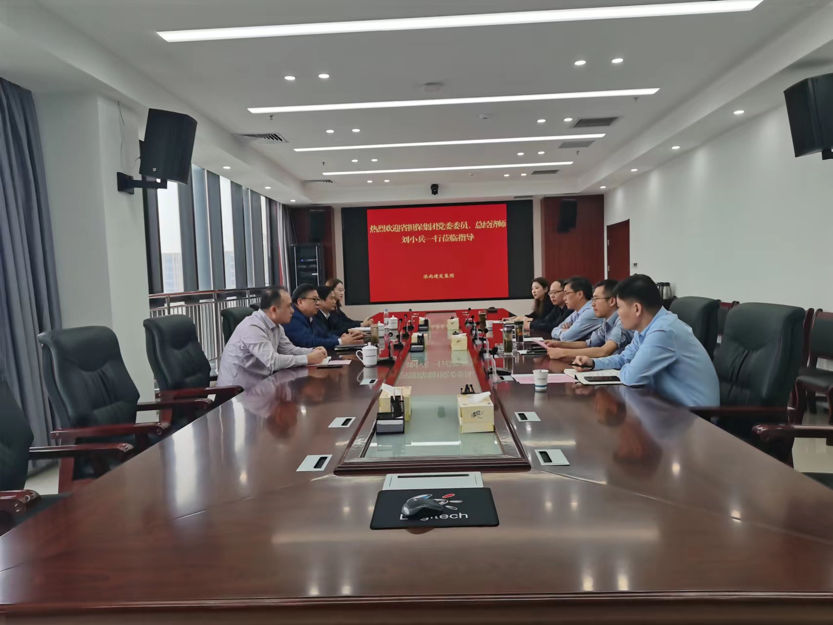近日,省担保集团党委委员、总经济师刘小兵一行到访建发集团,建发集团党委书记、董事长宋道河主持接待,党委委员、副总经理栾冰冰参加会议。
