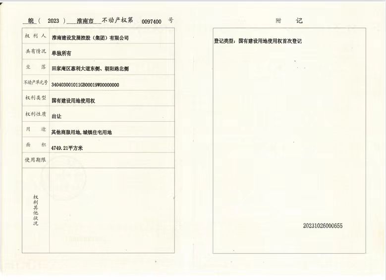 为保证土地出让金的按时缴纳,契税印花税的及时申报缴纳和不动产证办理,智泊公司做了细致的准备工作:一是提前与淮南市自然资源和规划局沟通出让金缴款流程,细化缴款步骤,逐一准备审核资料;二是依据缴税要求,按照3%土地契税、5%印花税的税率缴纳相关税费;三是与不动产登记中心进行对接,审查资料简化登记流程及时办理不动产权证书。