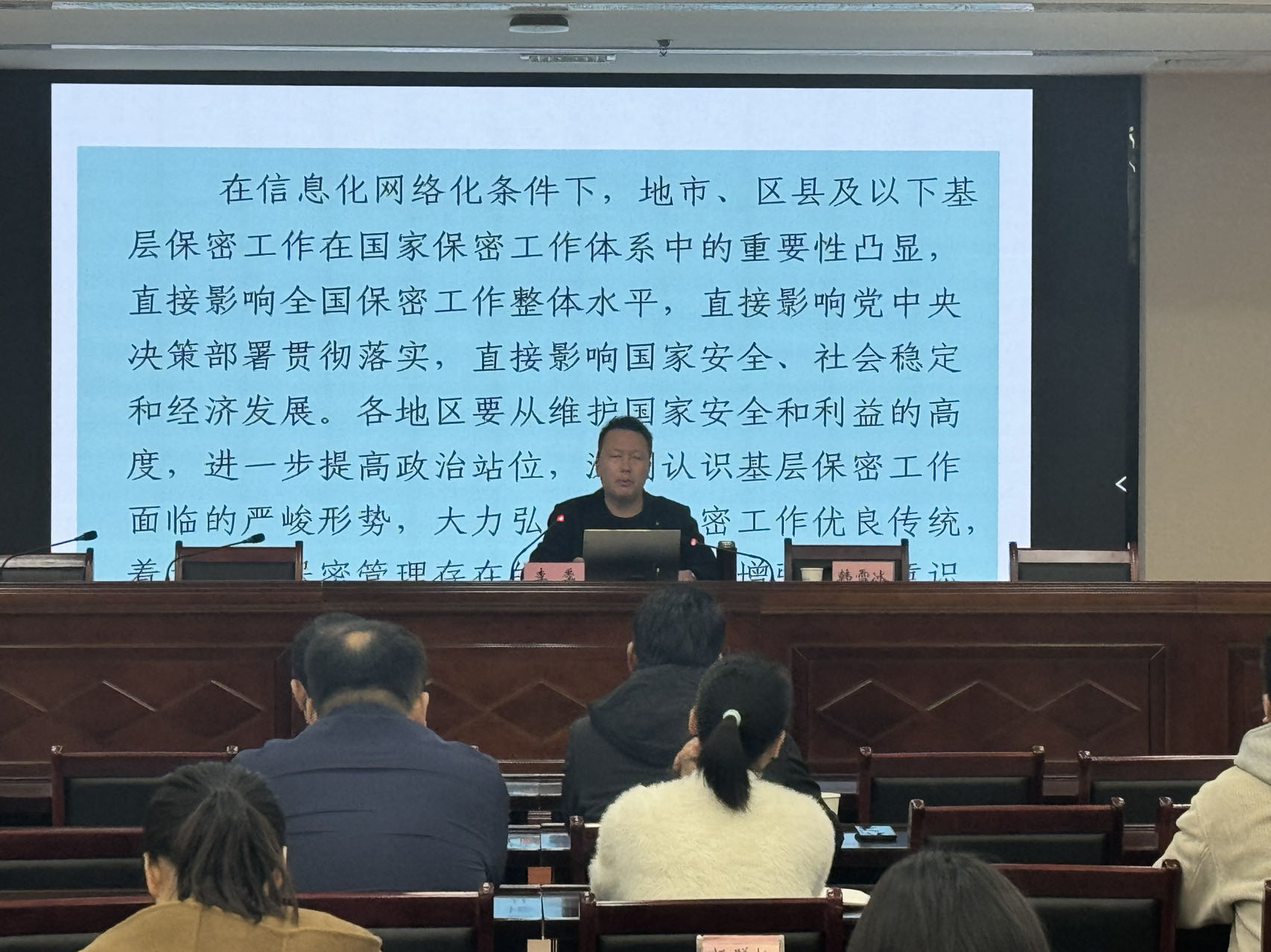 此次培训邀请市委办保密管理科科长李季给大家授课,李季科长从当前窃密与反窃密斗争形势、机关和单位保密管理存在的问题、当前基层保密工作重点任务、机关和单位保密工作基本要求,围绕保密工作的基本知识、保密日常管理、定密管理、涉密人员管理以及如何避免12种失泄密违规行为等进行了详细讲解。